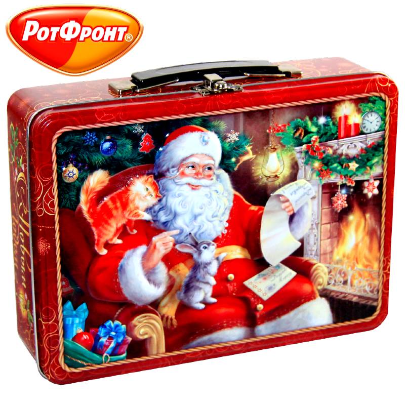 Сладкий новогодний подарок в жестяной упаковке весом 800 грамм